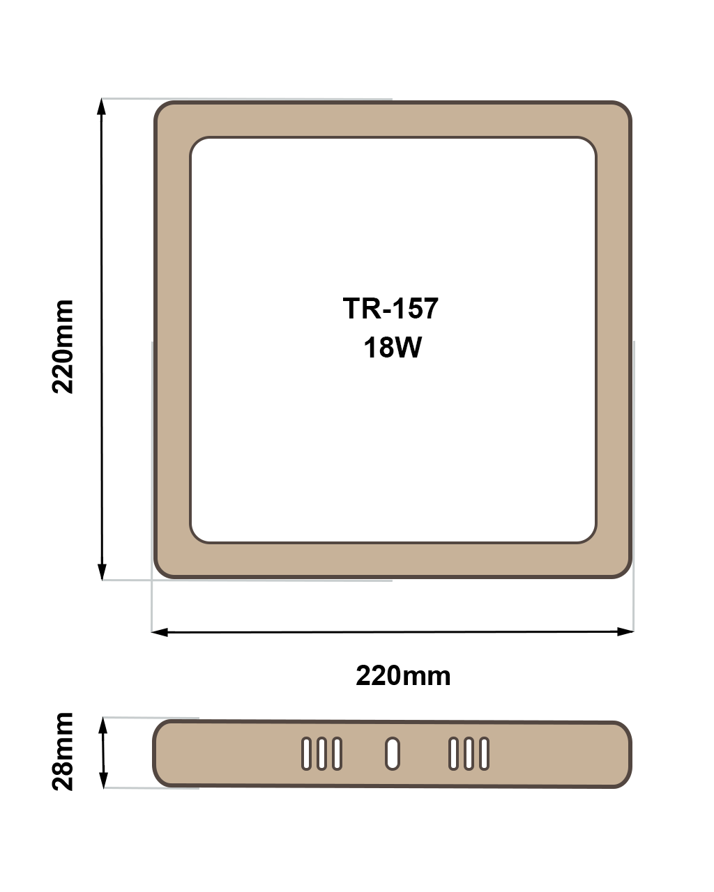 - Zewnętrzny wymiar światła: 210x210x28mm
