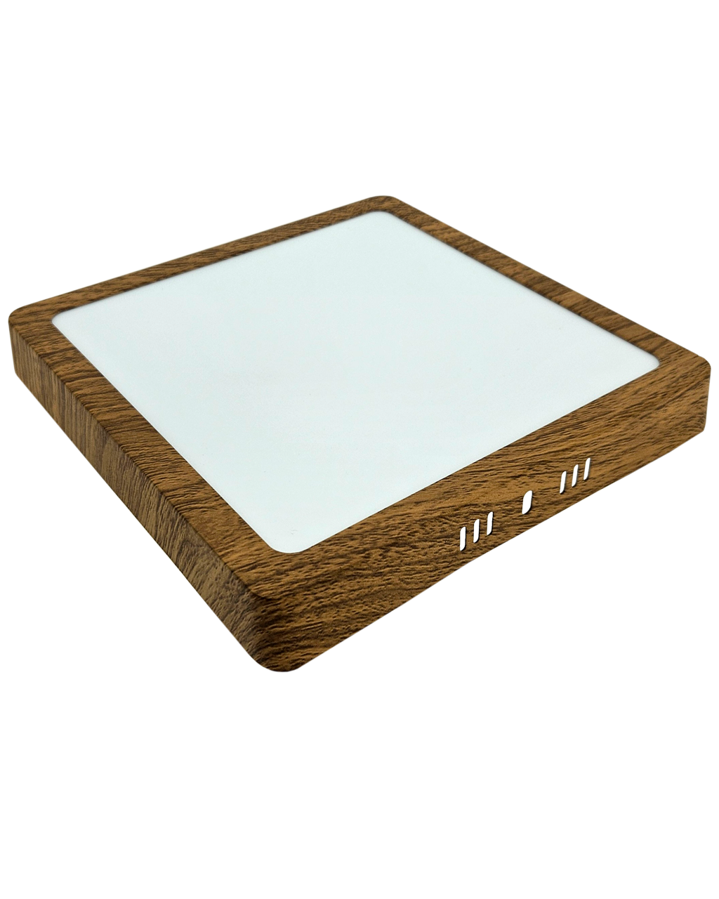 Imponujący design w dekorze drewna. Panel jest wykonany z wysokiej jakości aluminium. Dzięki zastosowanej technologii LED zaoszczędzisz do 85% energii. Jest przeznaczony do wnętrz.Zewnętrzny wymiar światła to 21x21x2,8cm. Szybka i łatwa instalacja.Kluczowe cechy:
