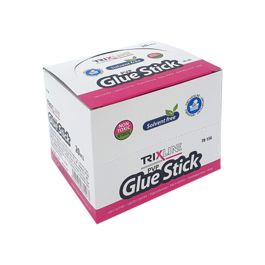 Klej w sztyfcie TR-15G Trixline do użytku domowego, szkolnego i biurowego. Odpowiednie do klejenia papieru, kartonu, tektury, papieru fotograficznego i podobnych. Nie zawiera rozpuszczalników.