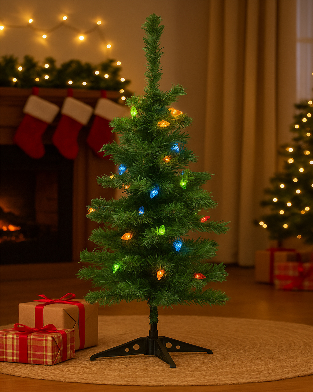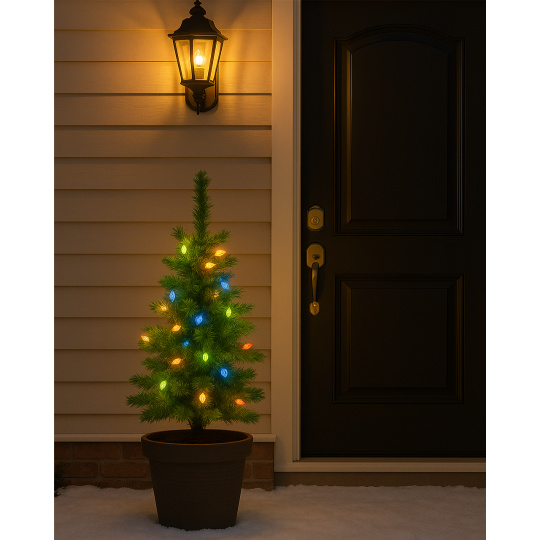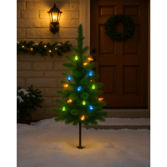 Choinka jest odpowiednia do użytku wewnętrznego i zewnętrznego – można ją łatwo wbić w ziemię lub zamocować w stojaku.