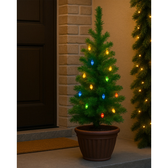 Wprowadź do swojego domu lub ogrodu magiczną świąteczną atmosferę z tą elegancką sztuczną choinką. Jest wyposażony w 20 kolorowych diod LED, które zapewniają przyjemne i przytulne oświetlenie.