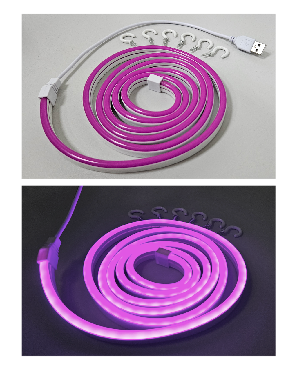 Neonowa fioletowa taśma LED TR-33N Trixline zasilana przez zintegrowane USB. Element designu, który wniesie do przestrzeni nowoczesną atmosferę. Idealne do tworzenia dekoracji na uroczyste okazje, takie jak przyjęcia, urodziny, bale, Boże Narodzenie, wesela, Halloween, Sylwester. Wystrój wnętrz pokoi dziecięcych, salonów, restauracji, barów, pubów, klubów, salonów gier itp. Pasek można łatwo zgiąć w dowolny kształt, wzór, napis czy tekst reklamowy i przyciąć do żądanej długości co 2,5 cm między czarnymi drucikami.