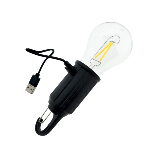 TR-348M Żarówka LED z ładowaniem USB, 3W, 3000K – z karabińczykiem do zawieszenia