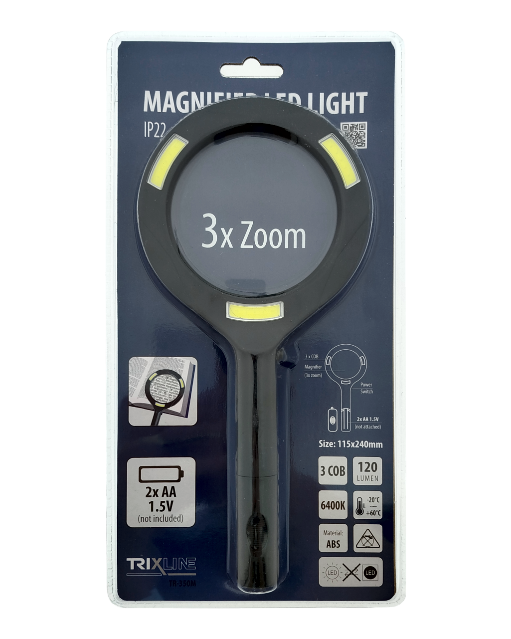 Bezpečnostní informace (PDF)TR-350M Lupa z oświetleniem LED 3 COB 3x zoom 6400K Trixline