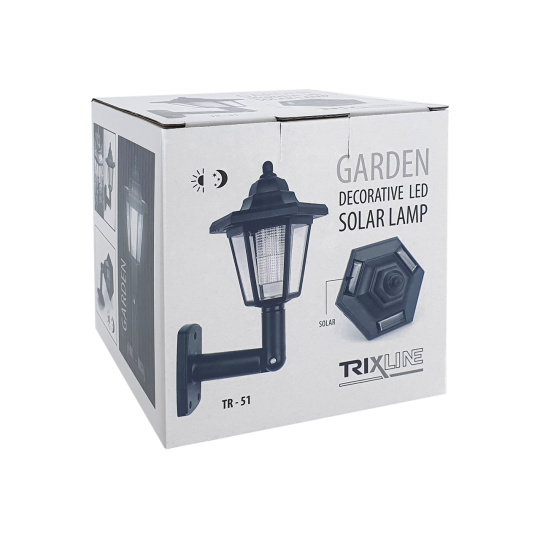 LED solarna lampa ogrodowa TR-51 Trixline. Latarnia może być przymocowana do ściany. Odpowiednia do dekoracyjnego oświetlenia ogrodu, otoczenia domu jednorodzinnego, balkonów, tarasów itp. Dzięki panelowi słonecznemu zaoszczędzisz energię i nie jesteś ograniczony podłączeniem do sieci elektrycznej. Lampa jest zaprojektowana tak, aby świeciła po zmroku. Regulowany kąt nachylenia uchwytu lampy o 180°. Zaletą jest niska waga 163g, mniejszy rozmiar latarni, stopień ochrony IP44 chroni przed rozpryskującą się wodą ze wszystkich kierunków oraz przed małymi ciałami obcymi o średnicy >1 mm.