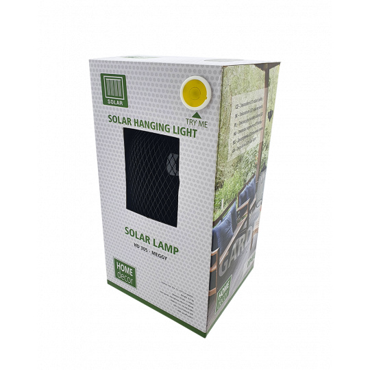 Oświetlenie solarne MEGGY. Wisząca solarna lampa ogrodowa, idealne rozwiązanie do oświetlenia wokół domu, na taras lub do ogrodu. Panel słoneczny na latarni absorbuje światło słoneczne w ciągu dnia, ładuje baterię i w nocy emituje światło. AUTOMATYCZNE WŁĄCZANIE/WYŁĄCZANIE Zdecyduj, kiedy chcesz go użyć, po prostu naciskając przycisk zasilania. Światło wyłącza się automatycznie w ciągu dnia. Przedłużcie dni spędzone na zewnątrz i cieszcie się siedzeniem nawet po zmroku.