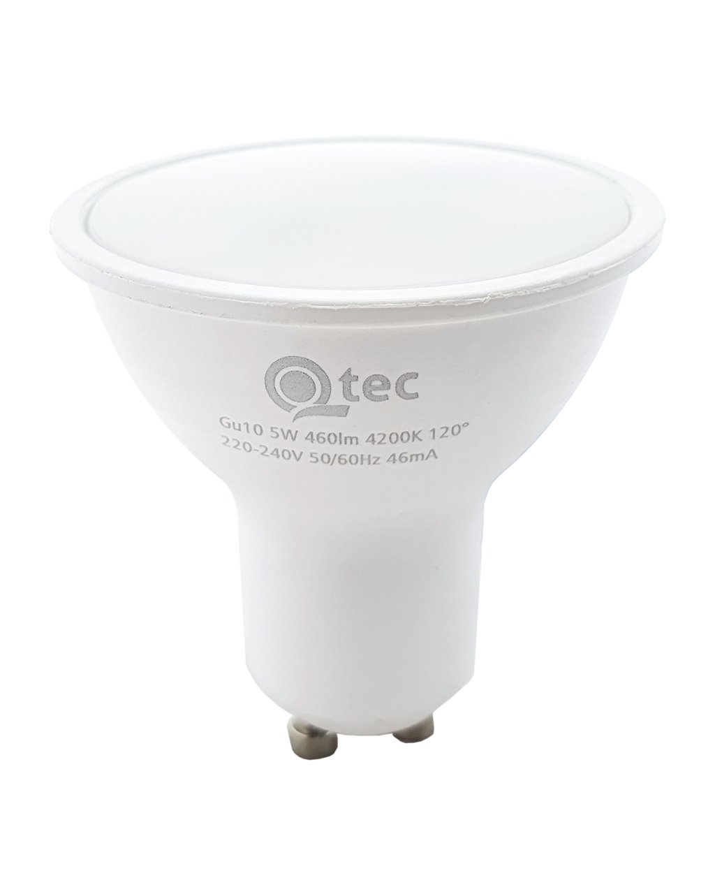 LED REFLEKTOROWA ŻARÓWKA Q tec to oszczędna żarówka LED z trzonkiem GU10, przyjazna dla środowiska, ponieważ nie zawiera rtęci ani ołowiu, a ponadto dobrze sprawdza się zarówno w ekstremalnie niskich, jak i wysokich temperaturach, gdzie żarówki z włóknem często mają problemy.Jej żywotność sięga aż 30 000 godzin.Dzięki swojej mocy 5W doskonale sprawdzi się jako zamiennik dla klasycznej żarówki 42W. Żarówka LED po włączeniu natychmiast się zapala bez jakiegokolwiek opóźnienia i emituje przyjemne neutralne białe światło 4200K.