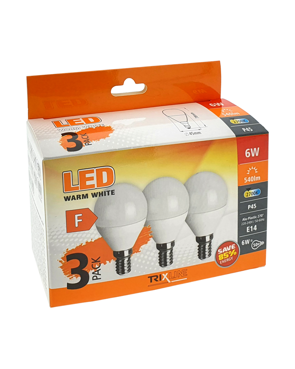 Żarówka LED Trixline 6W P45 E14 ciepła biała 3 PACK