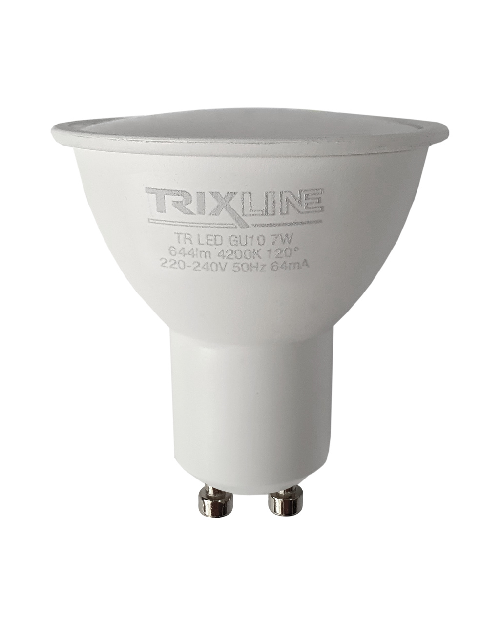 Energooszczędna żarówka LED Trixline z trzonkiem GU10, przyjazna dla środowiska, nie zawiera rtęci ani ołowiu, ponadto dobrze sprawdza się zarówno przy ekstremalnie niskich, jak i wysokich temperaturach, gdzie żarówki z włóknem często sprawiają problemy.Jej żywotność sięga aż 30 000 godzin.Dzięki swojej mocy 7W doskonale sprawdzi się jako zamiennik dla klasycznej żarówki 62W. Żarówka LED po włączeniu natychmiast się zapala bez jakiegokolwiek opóźnienia i emituje przyjemne neutralne białe światło 4200K.