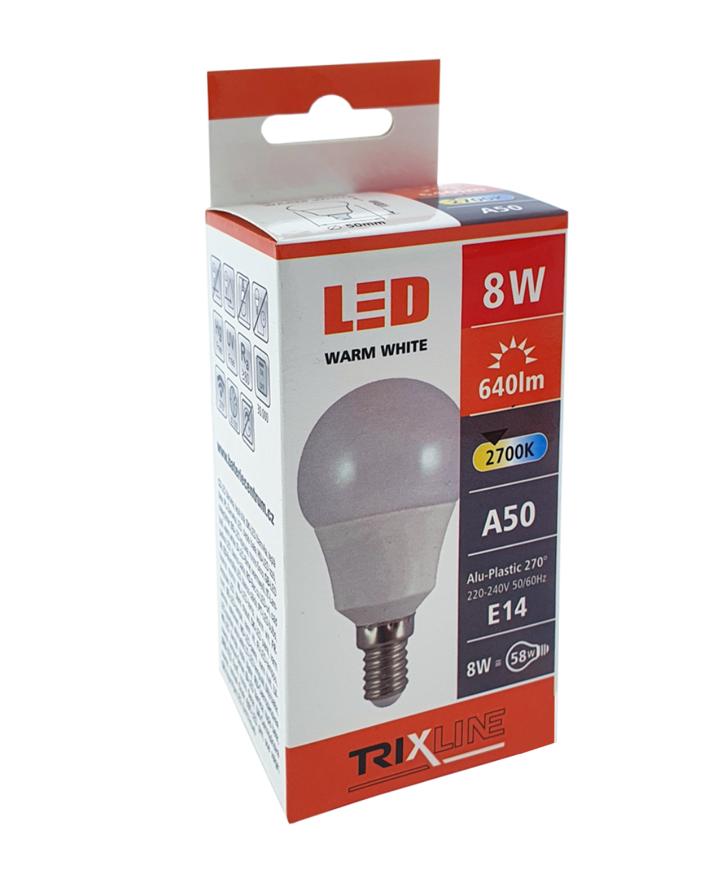 ŻARÓWKA LED TRIXLINE to oszczędna żarówka LED z gwintem E14, przyjazna dla środowiska, ponieważ nie zawiera rtęci ani ołowiu, a ponadto dobrze sprawdza się w ekstremalnie niskich i wysokich temperaturach, gdzie żarówki z włóknem często mają problemy.Jej żywotność sięga aż 30 000 godzin.Dzięki swojej mocy 8W doskonale sprawdzi się jako zamiennik dla klasycznej żarówki 58W. Żarówka LED po włączeniu natychmiast się zapala bez jakiegokolwiek opóźnienia i emituje przyjemne ciepłe białe światło 2700K.