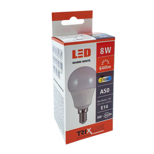 Żarówka LED Trixline 8W E14 A50 ciepła biała