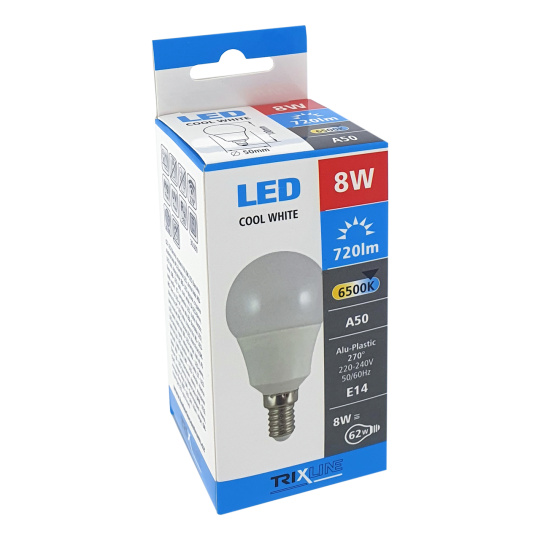 Żarówka LED Trixline 8W E14 A50 zimna biała