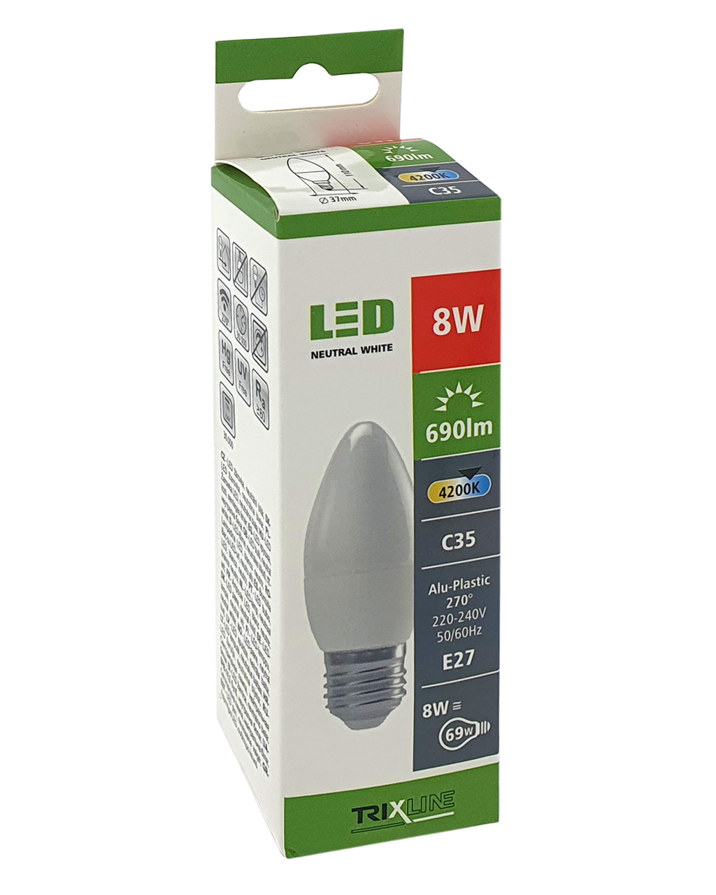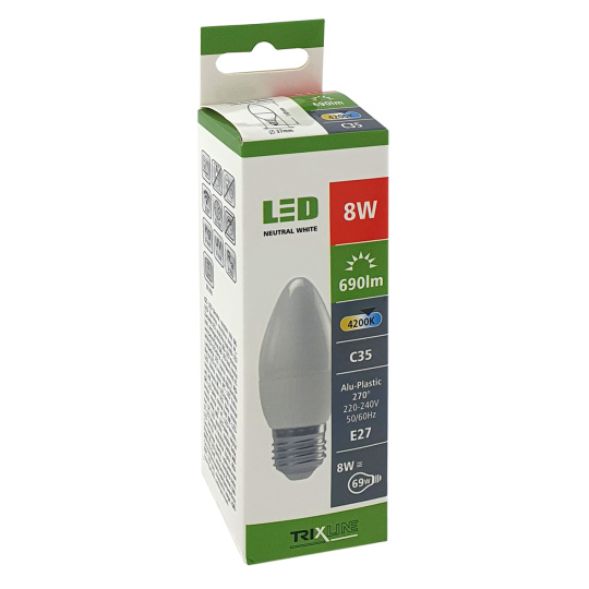 Żarówka LED Trixline 8W E27 C35 neutralna biała