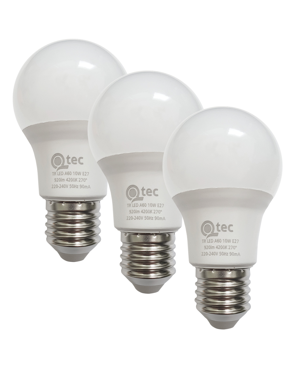 Żarówki LED 10W/920lm/A60/E27 neutralna biel 3 PACK Qtec