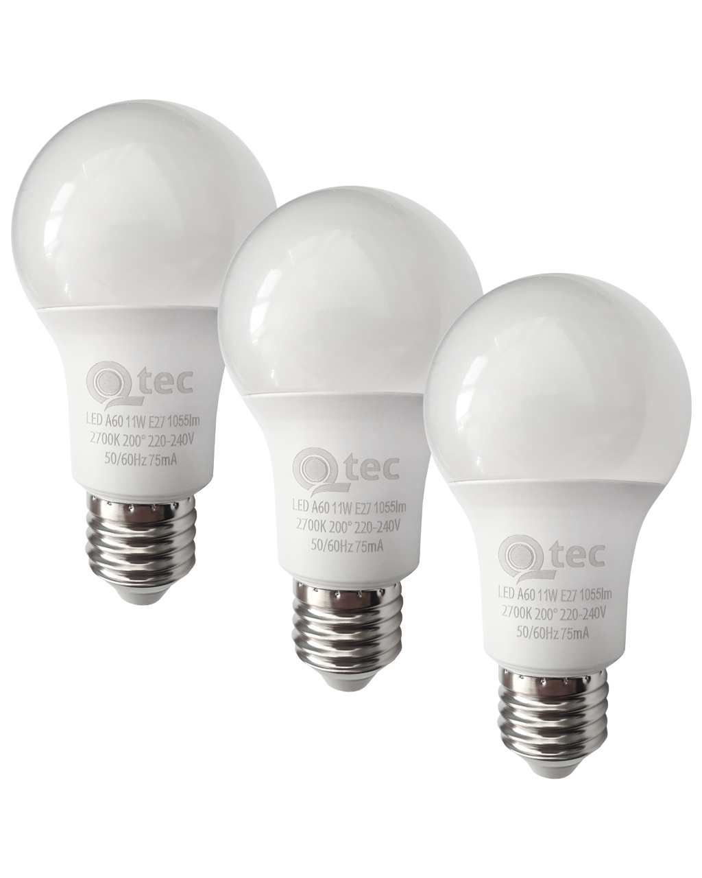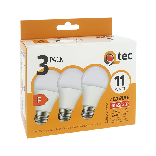 Żarówki LED 11W/1055lm/A60/E27 ciepła biała 3 PACK Qtec