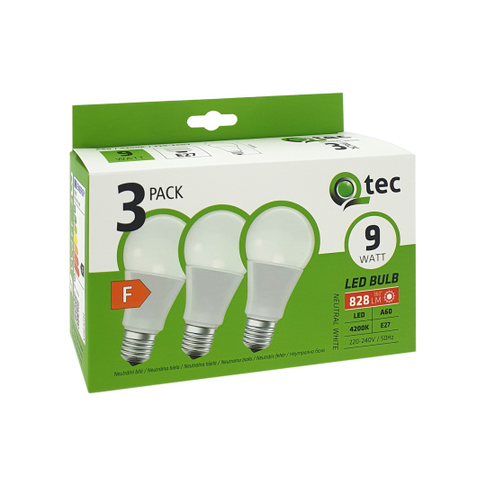Żarówki LED 9W/828lm/A60/E27 neutralna biel 3 PACK Qtec